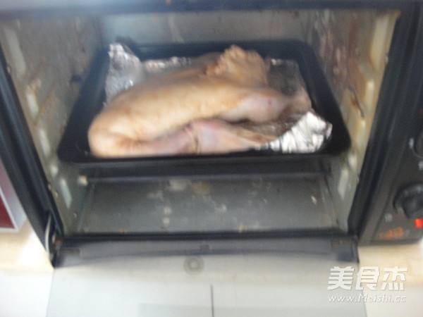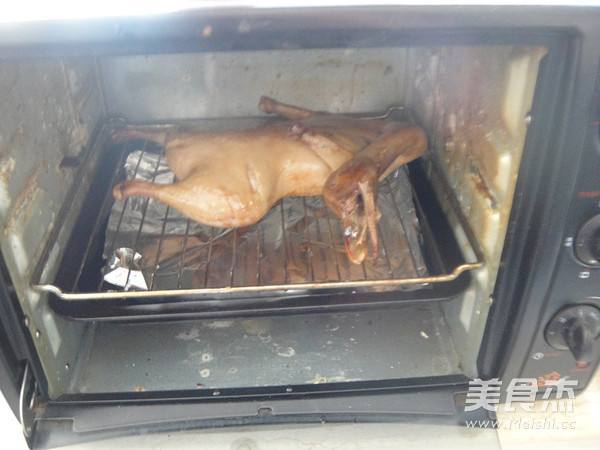 14. 把鸭子放入烤盘进烤箱倒数第二层先烤40分钟