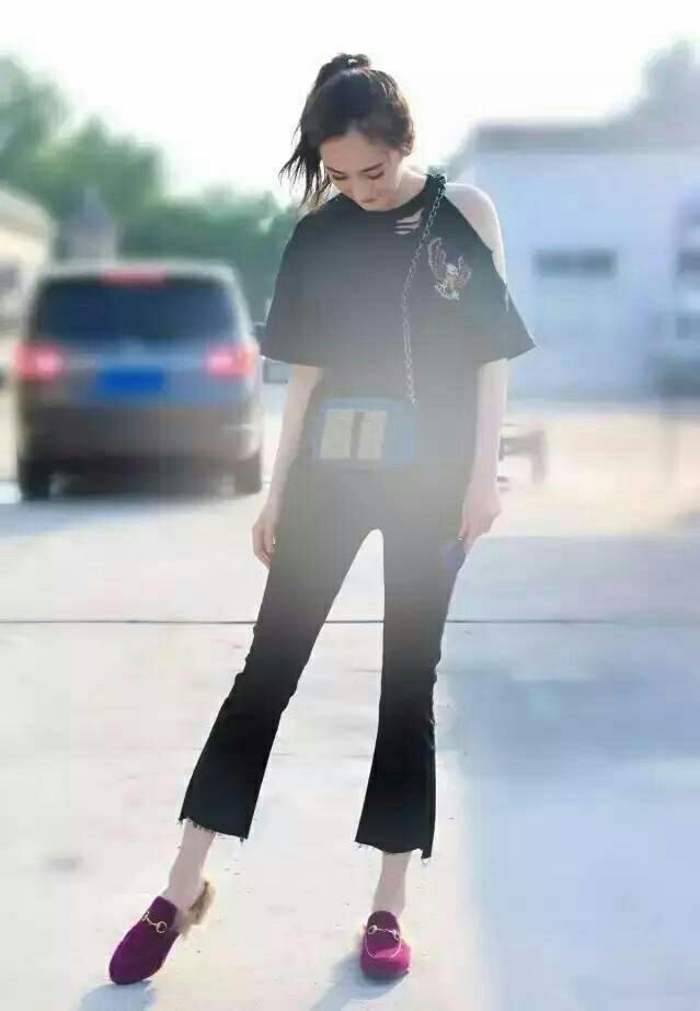 虽貌柴是秋天,T恤出街还是毫无压力得,搭上今年最流行的微喇裤,个性十足!