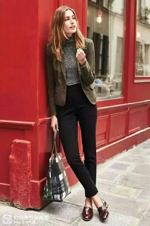 这个天气穿上小西装,搭配乐福鞋,露出纤细脚踝,满满轻熟