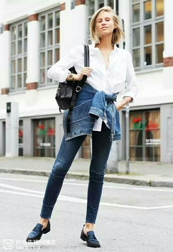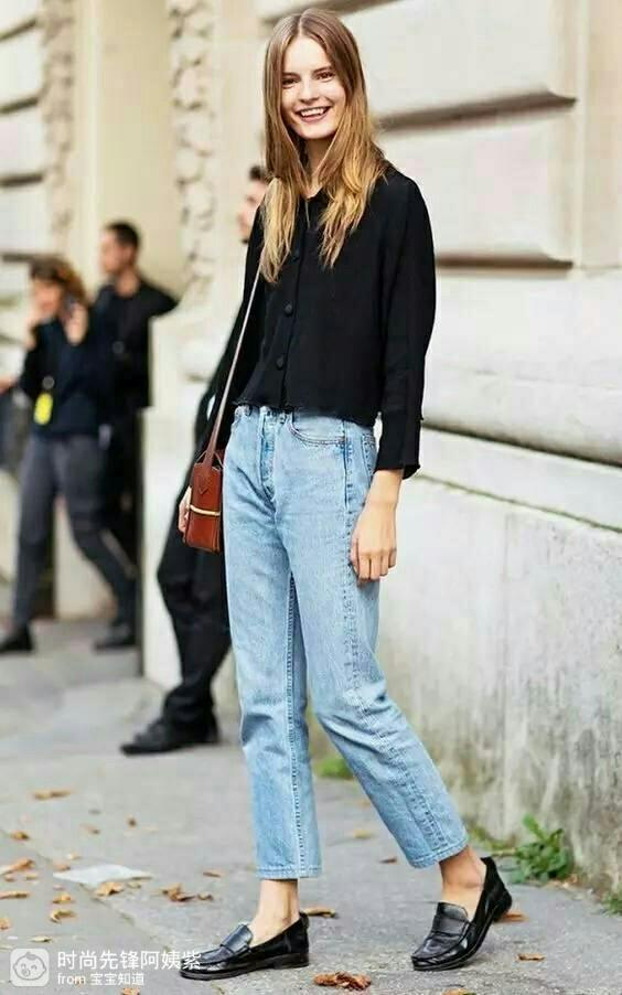 经典牛仔搭配复古乐福鞋,充满了文艺气息,又不乏优雅知性减糟!