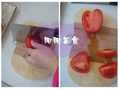 2. 阳阳开始安辨切西红柿了,那小手还是很胖