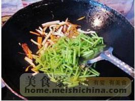 然后放入芦蒿继续翻炒行阶一下,加盐和味精调味出锅即可。