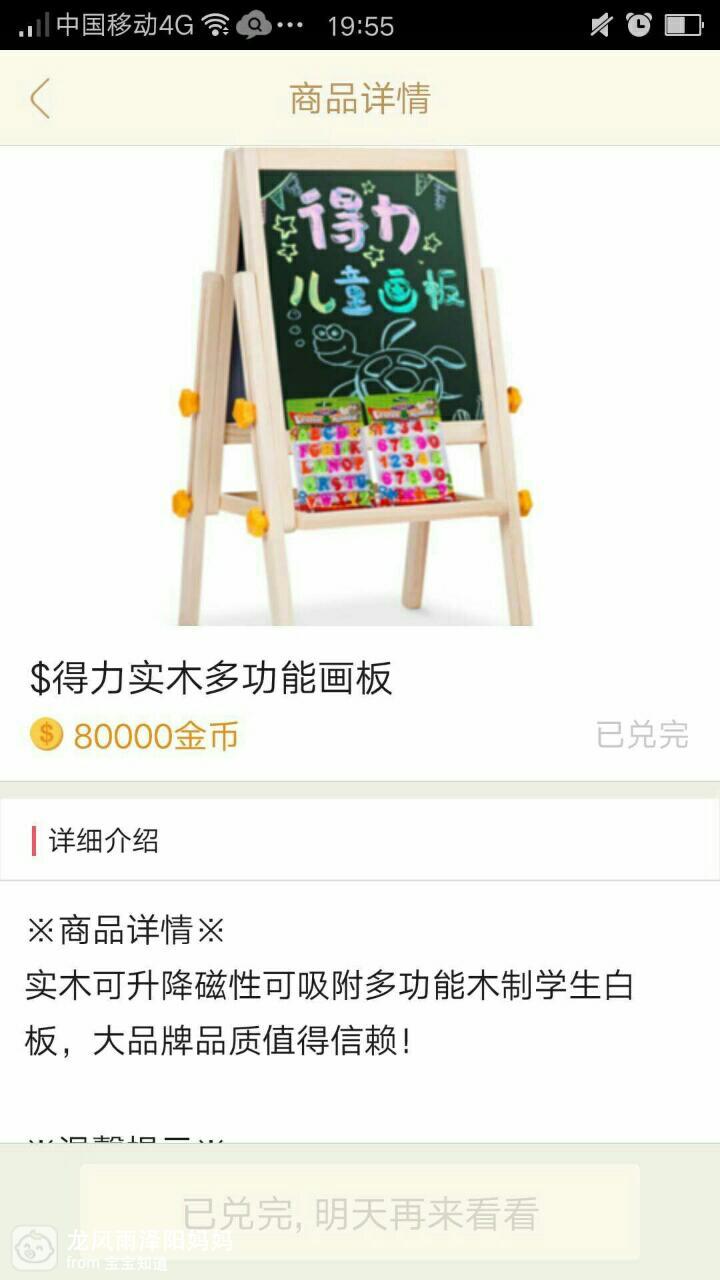 但是,我这样做是不是剥夺了他们动手的机会。我就想找到一个解决的办法,就在刚才我翻金币商城时看到多功能画板很适合他们。但是需要八万金币,这时立刻升起了我的写作欲望,今天晚上不上班,我要为儿子的画板努力。