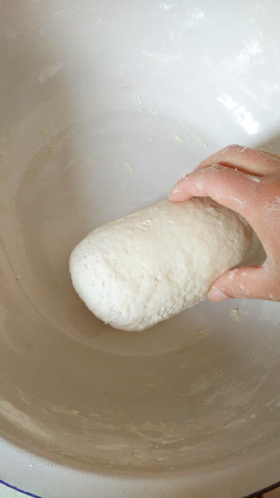 使劲细昌揉啊揉,终于和好了,为了宝贝能吃美味的小饺子,妈妈累点也值得了!