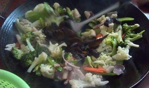 10. 最后依次加入西兰花和芹黑木耳翻炒