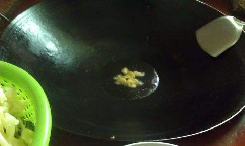 6. 热油锅,放入蒜爆香