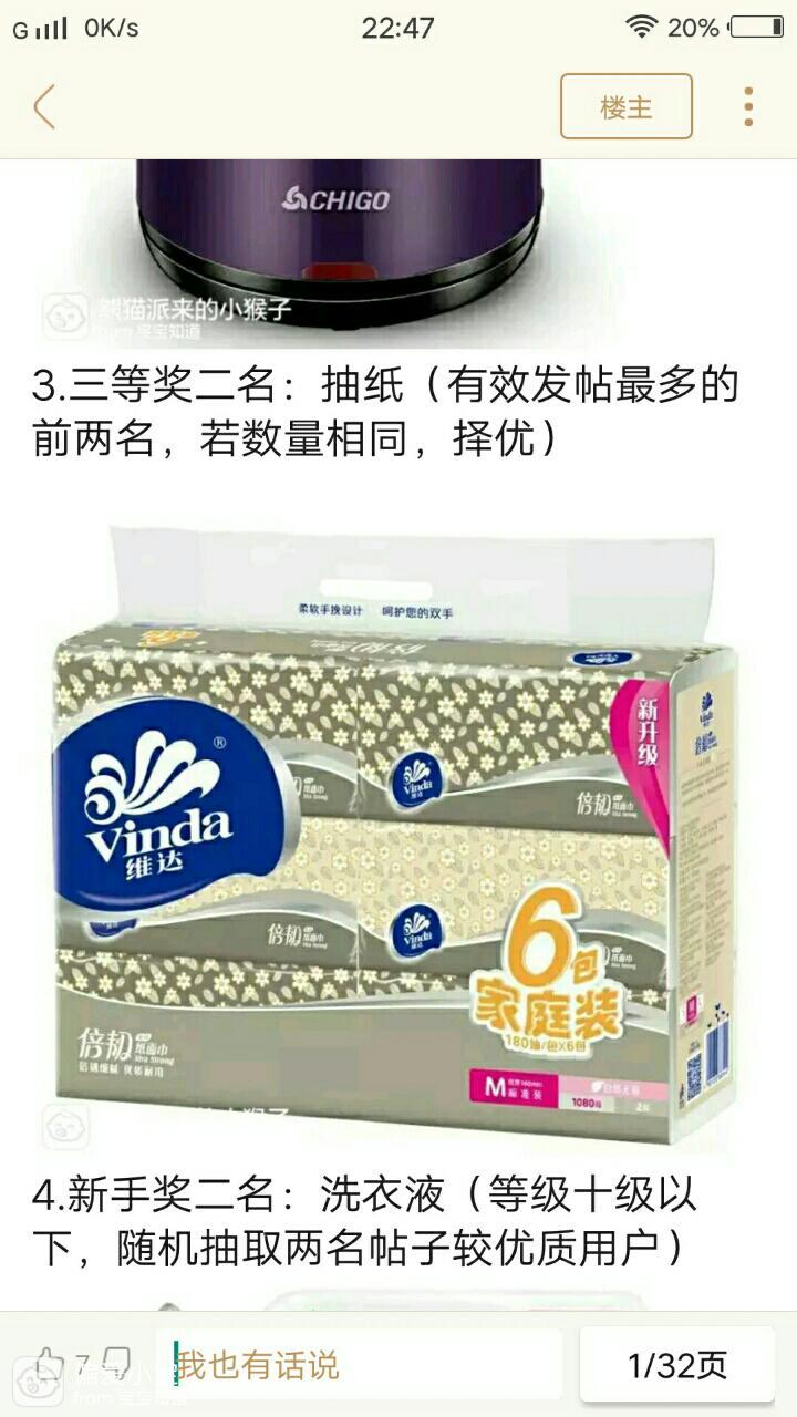 那次活动就在一个小时前颁奖了,我得到了实惠的抽纸,心里也是蛮高兴的,毕竟是我两天两夜的辛苦写贴换来的!感谢熊猫派来的小猴子,让我知道原来我也可以成为别朗乔贸人眼中的发帖大咖!