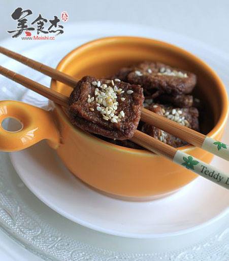 油豆腐 500克 调料 食盐 3克 冰糖 2汤勺 八角 2个 桂皮 1小段 生抽 5汤勺 老抽 2汤勺 水 1碗 茴香 3克 蜂蜜 5克 芝麻 10克