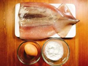 食材准备:鱿鱼一条重约400克,蛋清1个,淀粉10克