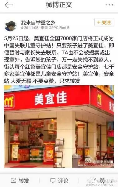 而这轮“爱心接力”当中,也不仅仅有做房产的链家。这段还被替换为“美宜佳”(便利店)、“顺丰”(快递)等各个版本。一时间,似乎大量的连锁行业门店都成为了中国失联儿童守护站,这起活动也让不少人开始产生质疑: 到底是商家的宣传活动,还是真心实意的爱心行动?