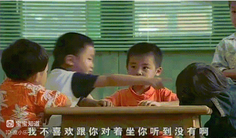 一个叫黄曜文的小男孩,手指着同桌的女孩,用威胁的语气放狠话“你不要跟我坐啊”!边上的另一个男孩也马上有样学样。