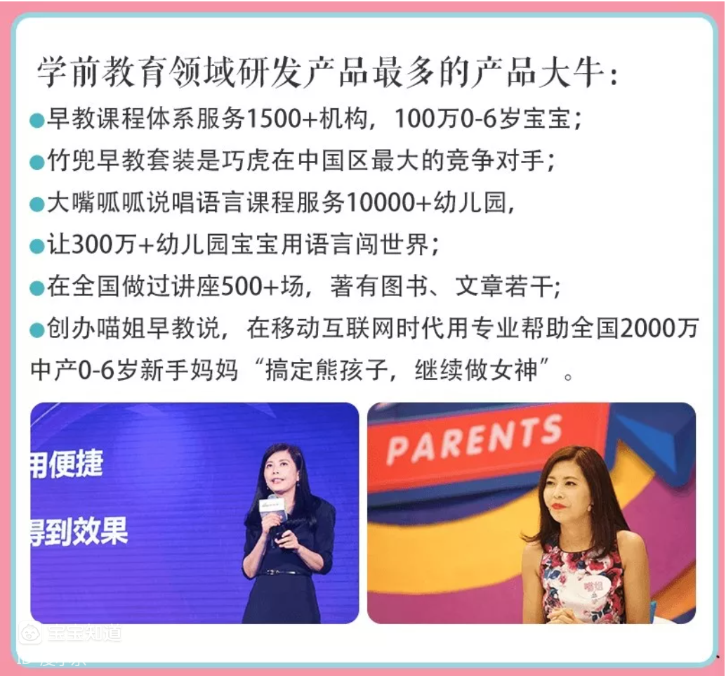 一直到2020年,喵姐在早教领域摸爬滚打了29年了。她曾主持开发了多套国内著名儿童教育连锁机构的课程,在全国各地做过100场以上大型家长讲座,足迹遍布美国、加拿大、英国、德国、新加坡、日本等多个国家,不断探寻世界学前教育的先进理念。
