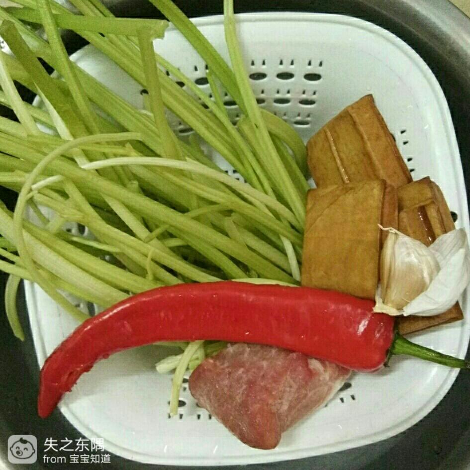 材料:芹菜,瘦肉,香干(我喜欢加点香干炒),姜蒜,红椒,