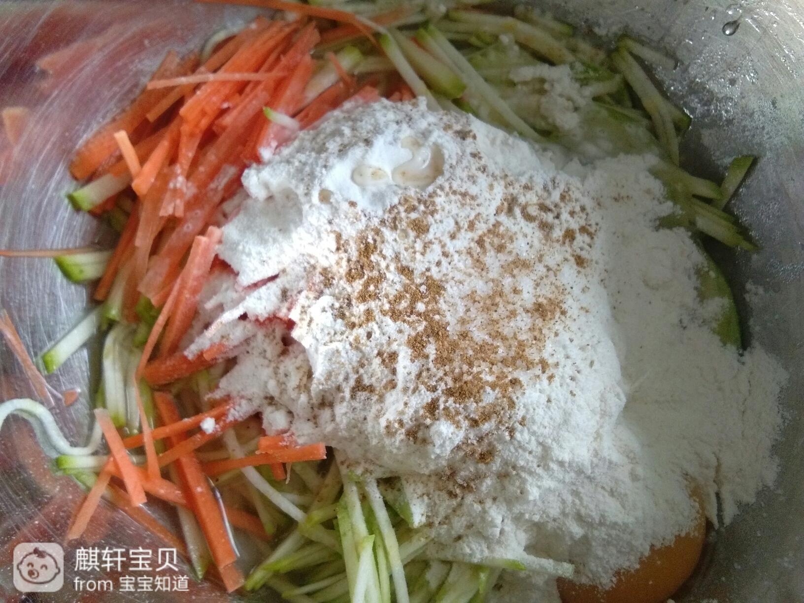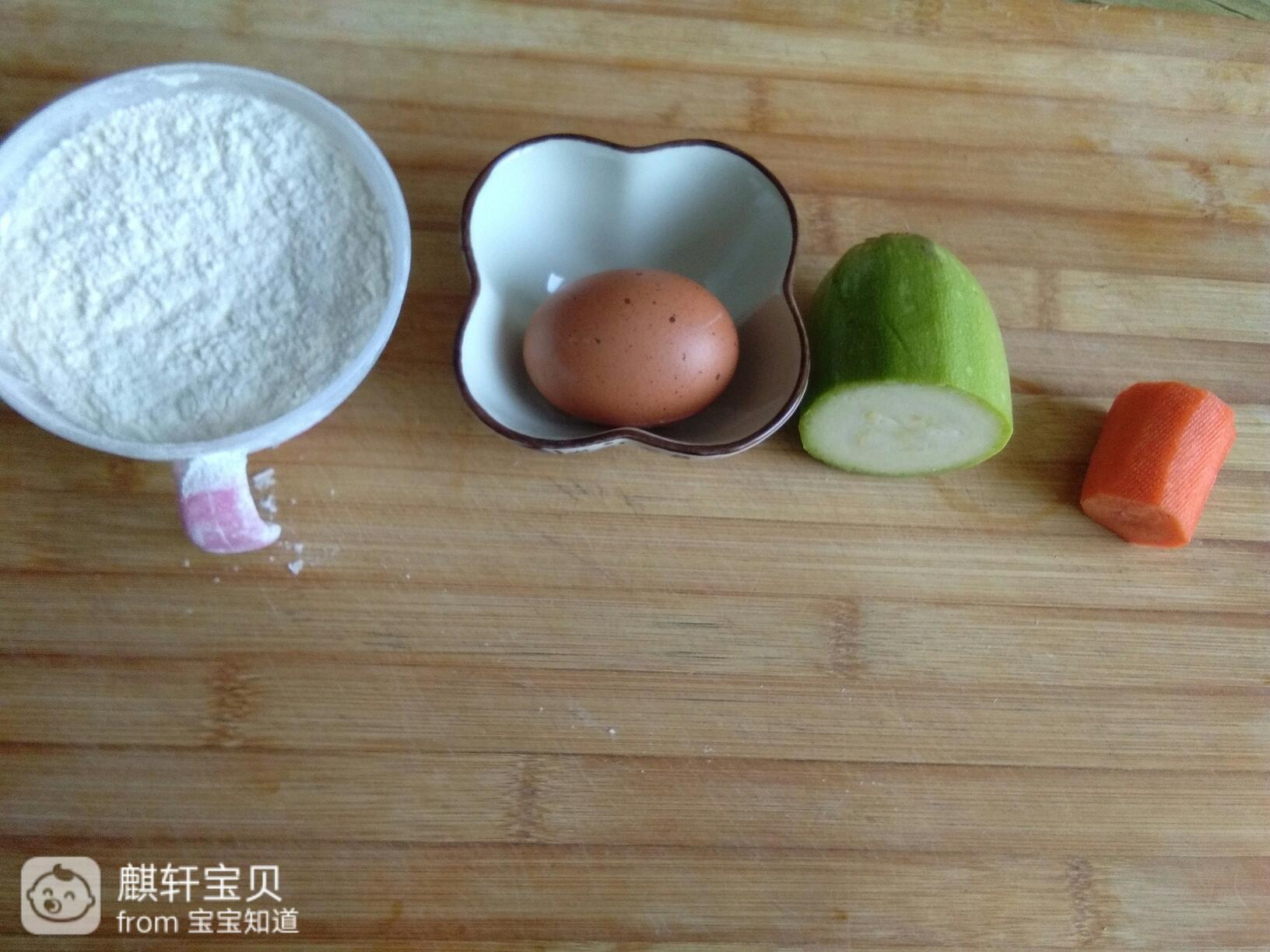 准备食材:面粉,鸡蛋,胡萝卜,西葫芦,油,盐,五香粉