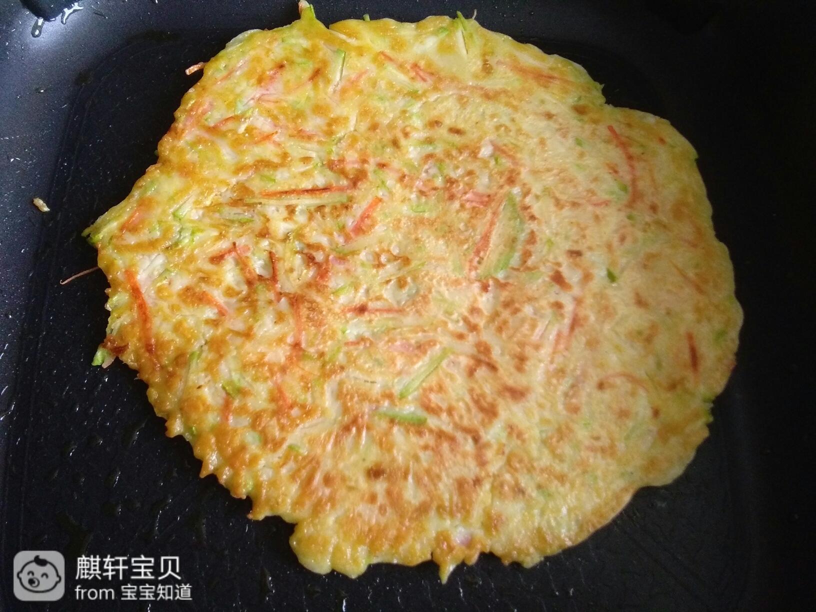 今天早上给他做的是西葫芦鸡蛋饼,西葫芦的营养特别好,多给孩子吃很不错,我还加了一点胡萝卜进去,颜色也是棒棒哒!