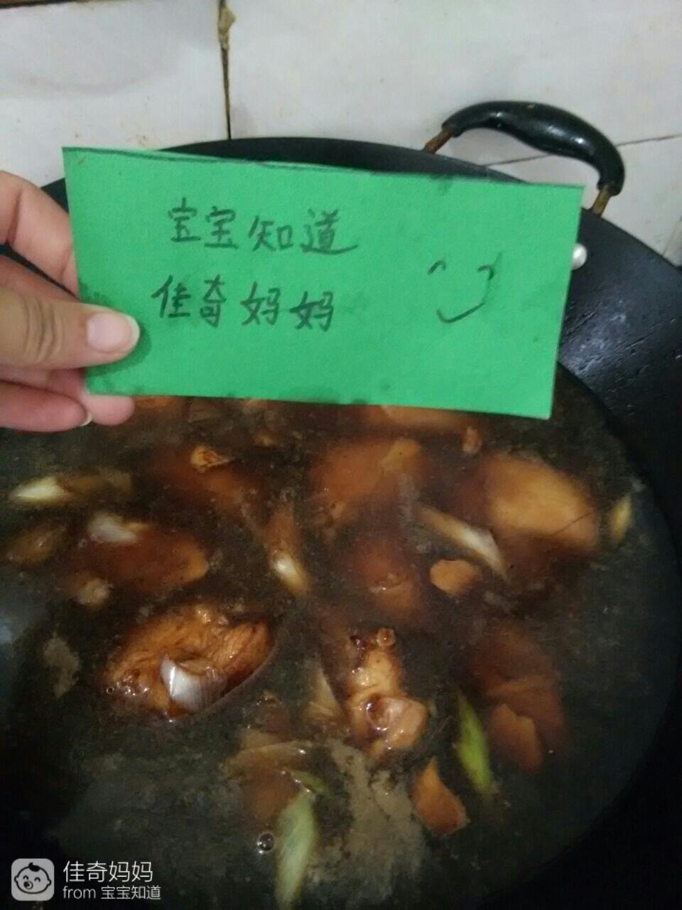 大火烧开转小火,加入适量老抽,盐,熬1小时30分钟,大火收汁。