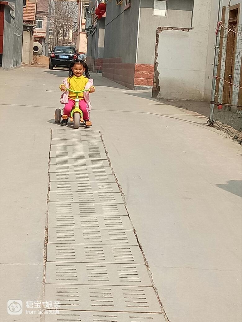 准备出发,大宝骑着自己的小三轮车,高兴的前进着,二宝也开心的在我身上扭来扭去的,那阵势就想要自己下来跑着追姐姐。大宝越骑越欢,二宝乐的咯咯直笑!