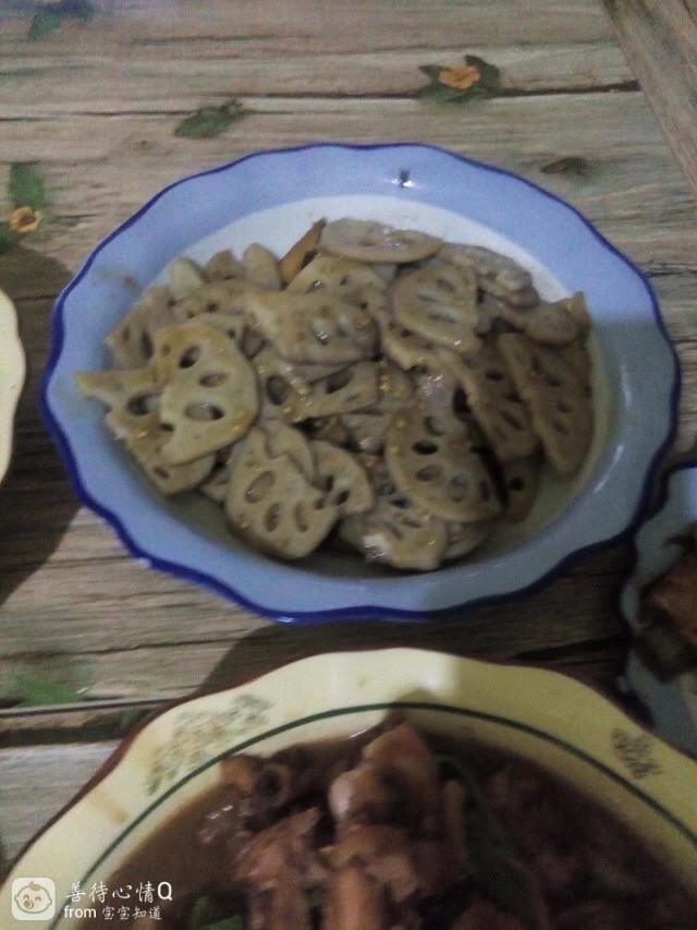 炒的藕,三位厨师打赌的,都说自己炒藕不会变黑,于是,藕就这样了,后来,我们又吃了两次这样的黑藕,呵呵