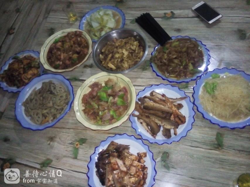 看看这一桌子菜,其实还有一道鱼没拍上照片,又麻又辣的鱼片,嘿嘿,吃的好过瘾,菜名大家猜