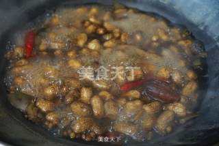 7 接着放入花生,中火煮20分钟左右。煮好后不要开盖,焖一会。