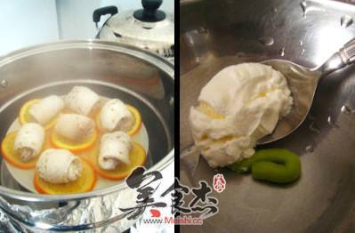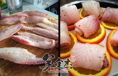 蒸橙卷的做法 1. 鱼行凡件柳洗净,撒上调料腌10分钟