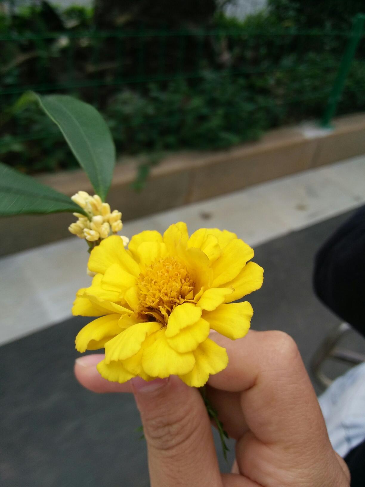 有菊花呢,还有桂花呢,路上摘的,哈哈,千万别学我哈特别是桂花,老香了,人家都说十月桂花香,哈哈这才农历九月呢桂花就这么香了,好喜欢呢。