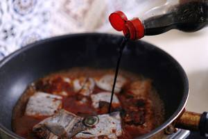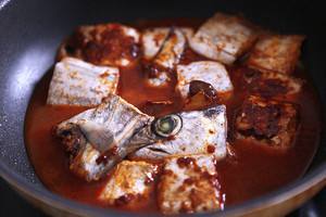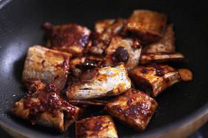 下入带鱼,翻炒。