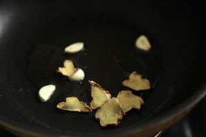 锅上火瓦减,烧油,放入切好的姜蒜片,炒香