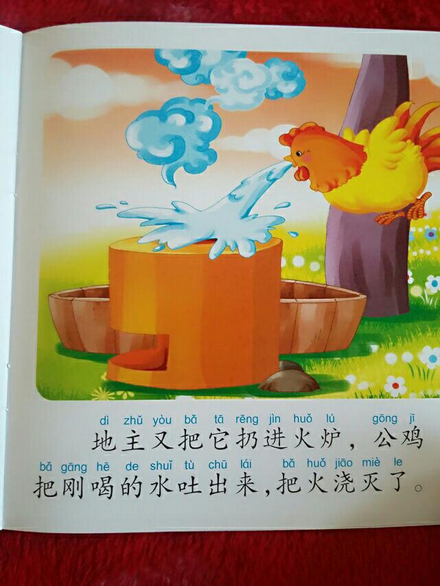 地主又把它扔进火炉公鸡把刚喝的水吐出来,把火浇灭了