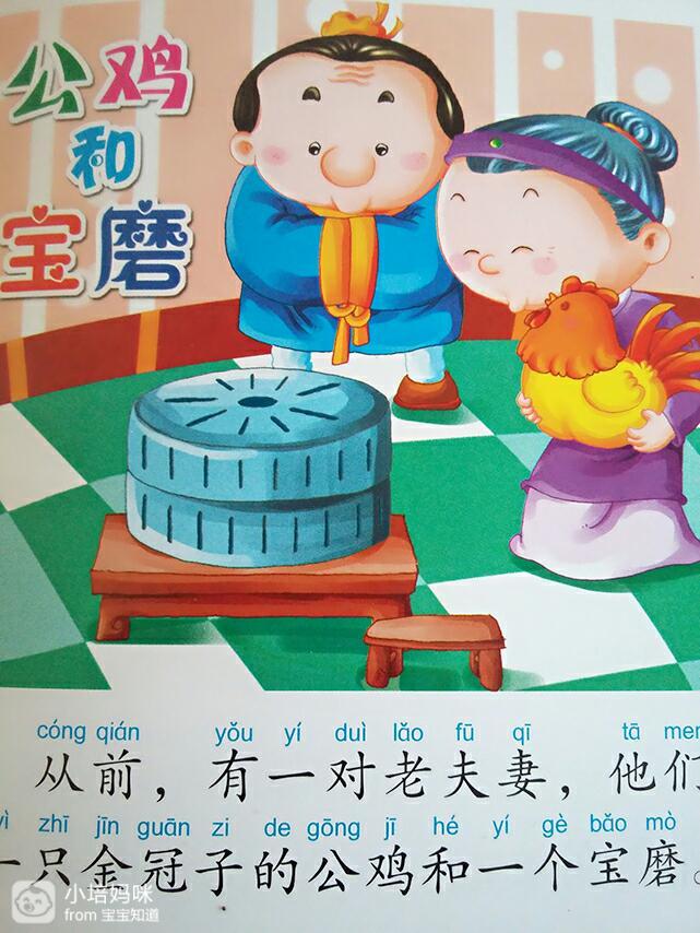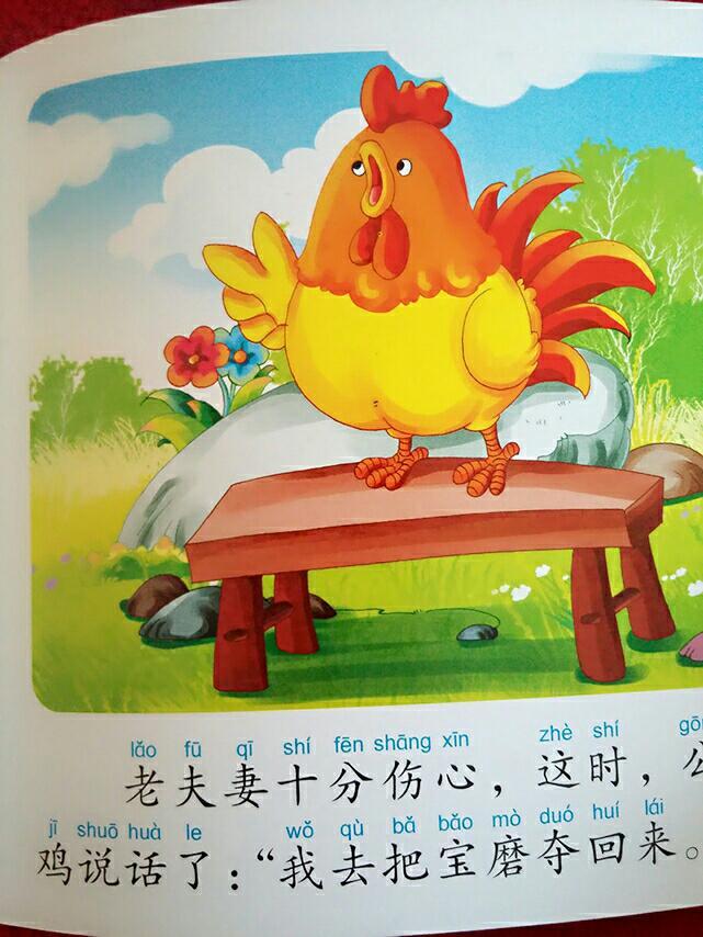老夫妻十分伤心,这时,公鸡说话了:我去把宝磨夺回来