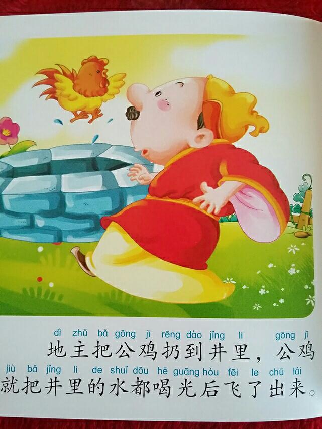 地主把公鸡扔到井里,公鸡就把水都喝光后飞了出来