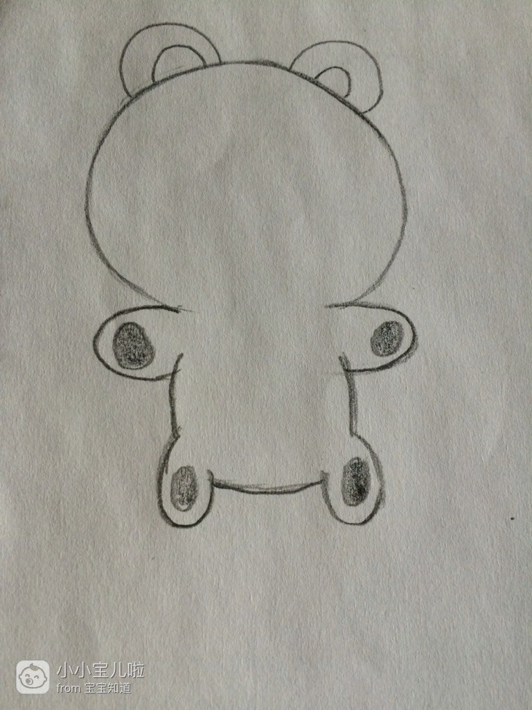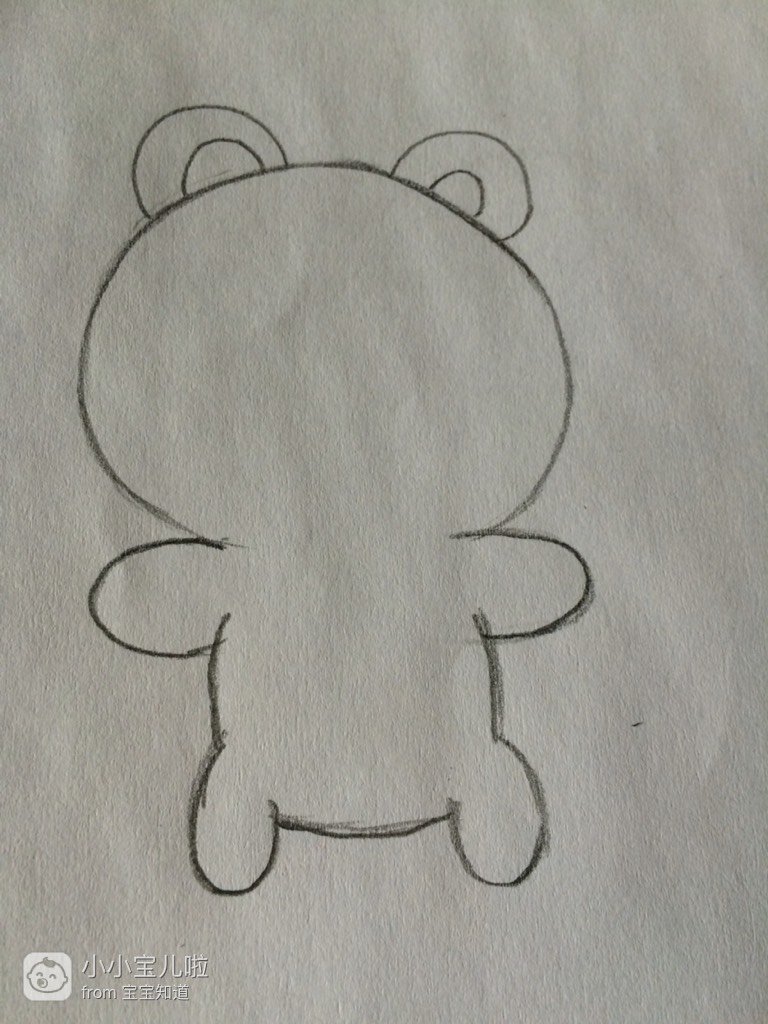 在头部下面画出半圆,作为双手,如图