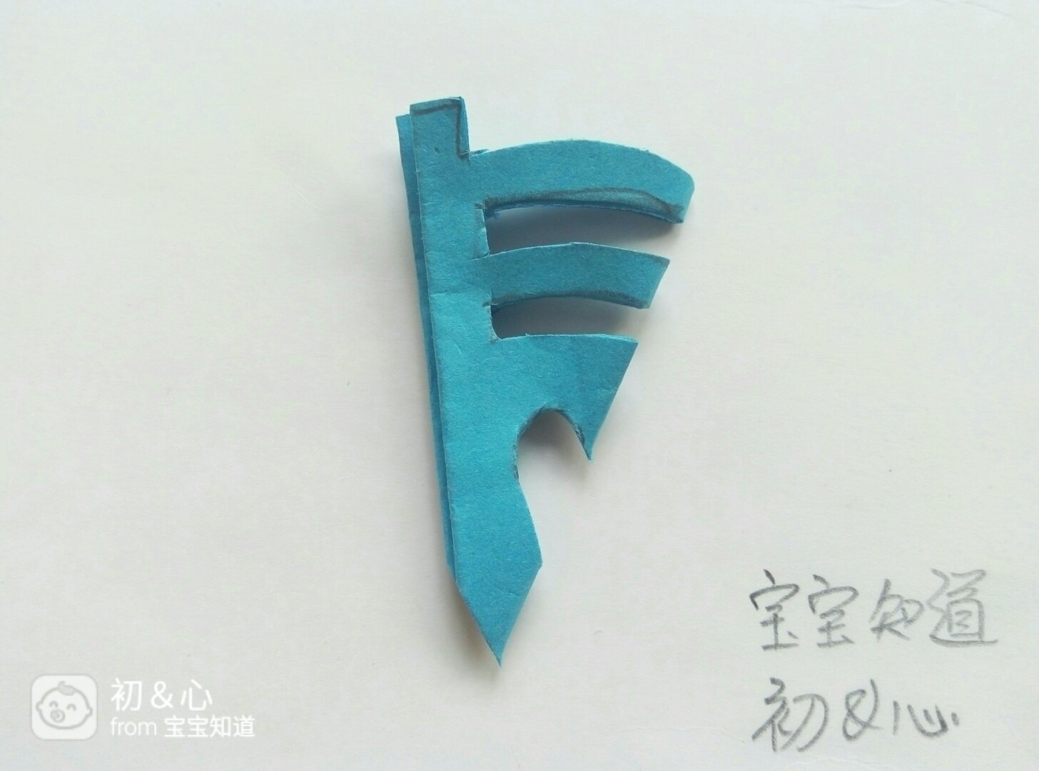 然后用剪刀沿着画出的图案,把多余部分分别剪下去。如图所示。