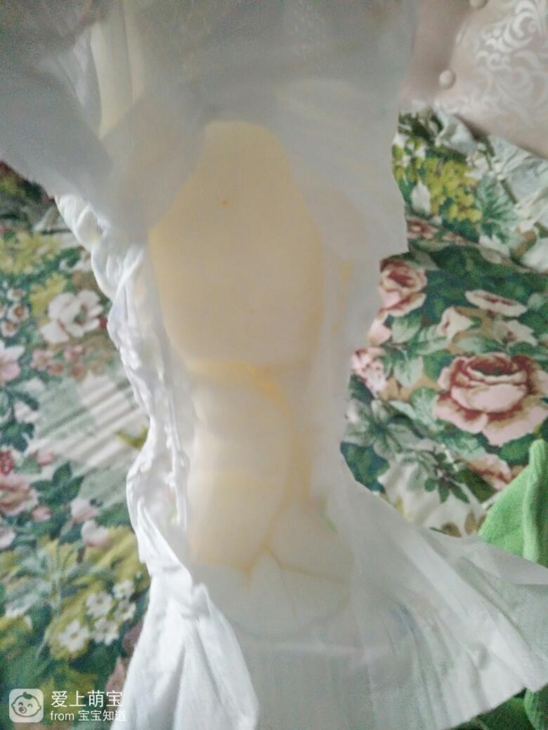 看这个用后的纸尿裤没有断层的现象哦,从前面到后面都被吸得满满当当的,而且表面我用纸巾测试了,还比较干爽,