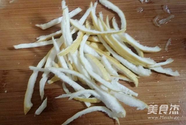 2. 柚子皮,主要来说它:柚子皮浸湿可以用盐来搓柚子皮,再冲洗干净,去掉里面的柚子瓤,切丝。