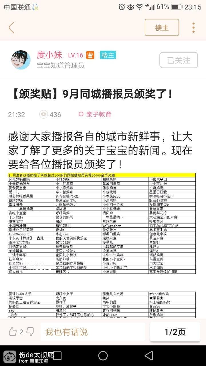 今天像往常一样,在各个圈子晃荡了一圈,然后点开关注,想看看我关注的人都有什么动态,首先映入我眼帘的就是度小妹这个颁奖帖,于是我迅速的点开看获奖的有没有我,上个月我可是很勤快的参加这个活动呢,首先看10000金币的,蒸絮吊没有我,为什么?我明明发够了呀,我当时还特意数了数一百大几十条,没关系我继常菜续往下看,直到最后都没能看到自己的名字,再看一遍,万一刚才没看到呢,可是还是没有,当时我的第一直觉就是小妹会不会把我给漏了呢,一会我得去找她反馈一下。