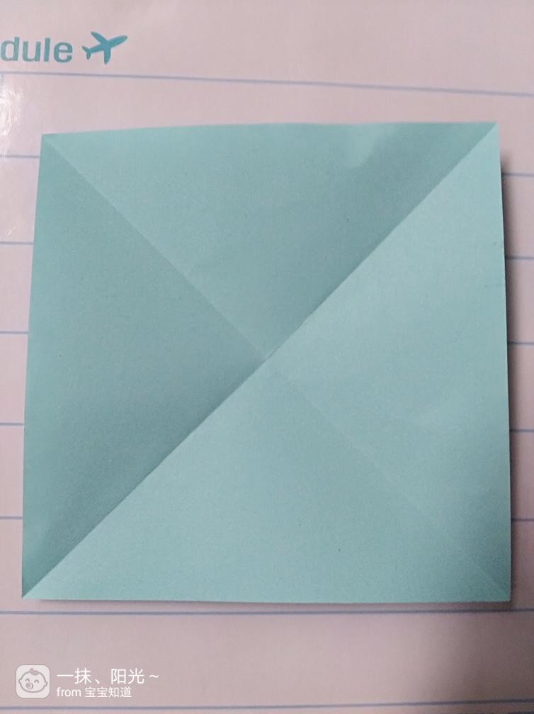 第四步:根据上图步骤,把三个角打开,然后在把三个角往第一条折痕对折。普通