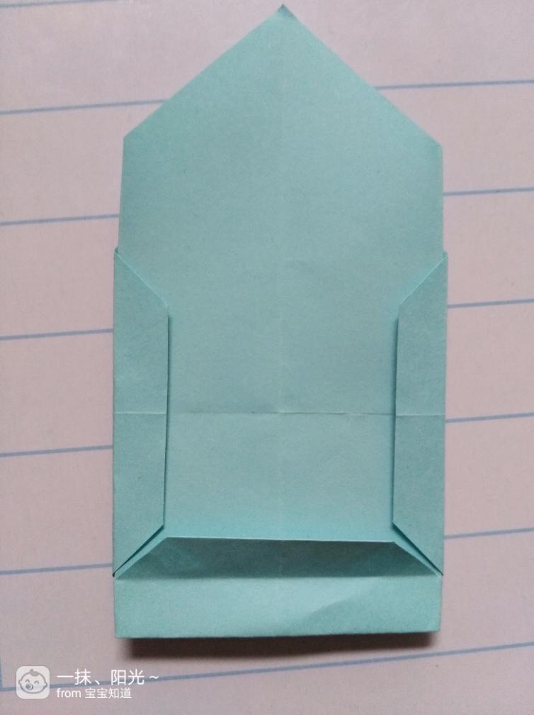 第十一步:根据上图步骤,在把图形上面的尖角往上折一点,然后在把折好的图形反到正面来,一个小相框就折好了。如图