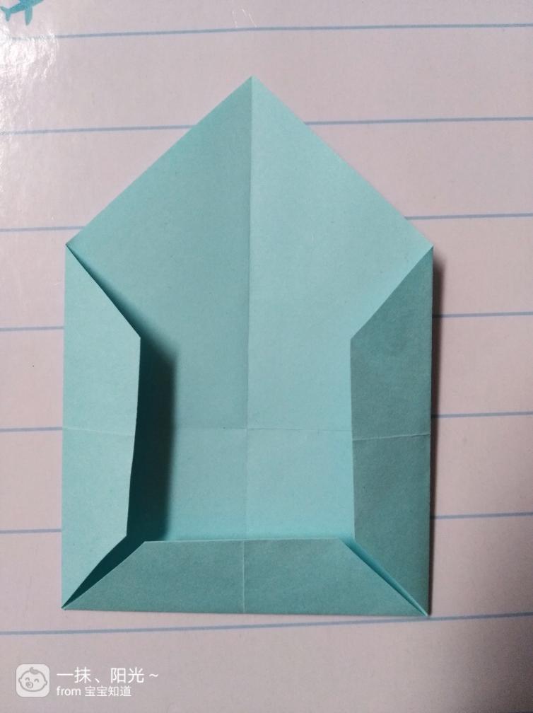 第六步:根据上图步骤,把图形最下面的边往上折一点。如图