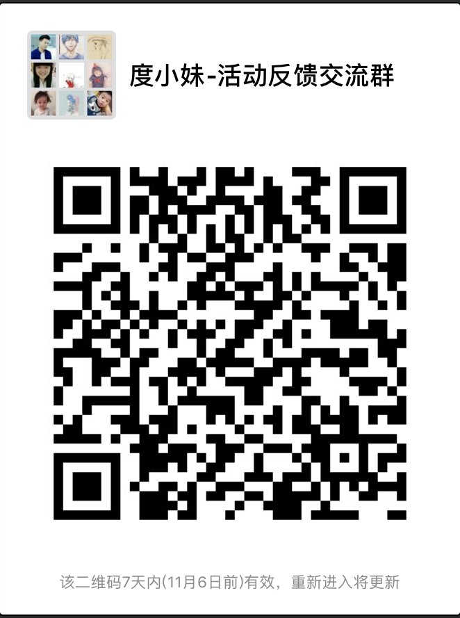 【反馈交流】为及时解决大家的反馈,小妹决定建立一个专门的【度小妹活动反馈交流群】,本群只要是关于度小妹的官方活动(如同城播报、主题月、同龄录、小游戏),不论是活动预告、公告、还是结束后的系列流程跟进均可反馈交流,但本群仅限谈论于以上活动反馈和学习交流信息,发布其他无关内容,一律会被踢出。 以下是入群方式: 1、 直接扫码进群