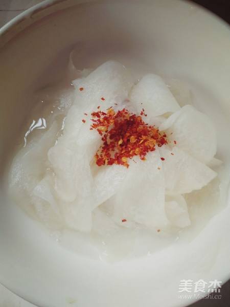 白萝卜 半根 辅料 盐 适量 白醋 50克 辣椒粉 少许 白糖 适量