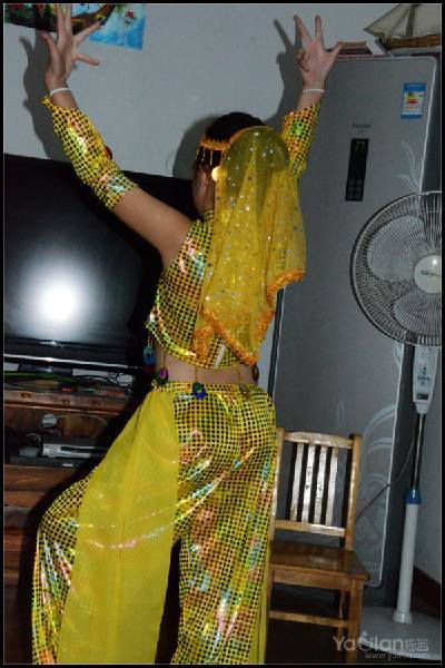 上半年跟着老师学了一曲印度舞,其实她在之前跟着舞蹈班别而同学表演视频在家里学了很多次,基本动作都记住了,后来去上了几节课。由于之前一直参加比赛是傣族舞云之南,所以印度舞只能在家里自己玩玩,所以服装也没准备。