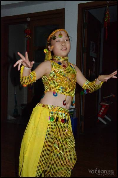 前几天,在小区楼道里发现小区物业准备搞中秋录絮晚会,要征集节目,我给轩说了,叫她自己去表演一个,去年中秋晚会,她和一个好朋友及她妈妈一起表演了加油操,那时候一个人表演还不敢,今年参加了好几次比赛,其中一次还是独舞,所以不怯场了。她说表演印度舞,我想傣族舞衣服就不用准备了,她不肯,云之南跳腻了,还有一个别人学的傣族舞,她自己动作也会,总觉得没跟着老师亲子学过,不敢在外面跳。