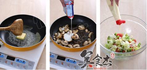 4、口蘑可以给酱汁的味道增色不少,别省略不用哈。没有淡奶油,就用牛奶来替代吧。