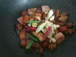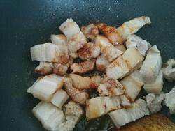 加五花肉翻炒至每块肉上色