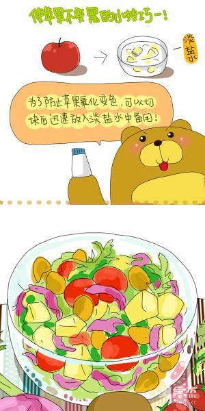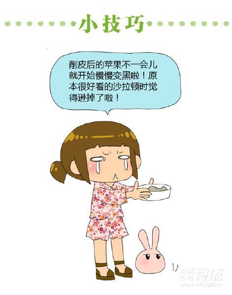 2. 削皮后的苹果不一会儿就开始慢慢变黑啦!原本很好看的沙拉顿时觉得逊掉了啦!