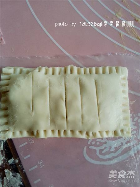 9. 在饼皮上划5刀;