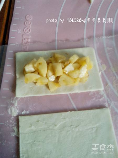 5. 一张飞饼皮上铺上香蕉丁;