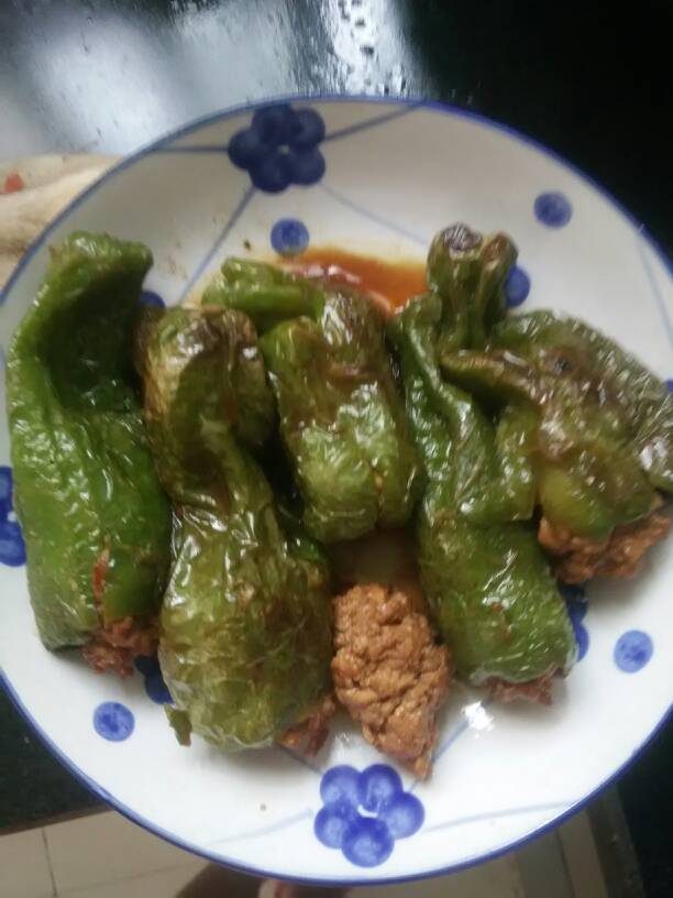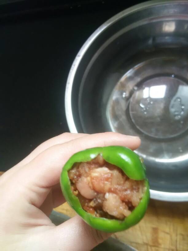 3个宝宝 LV.10再把肉肉用筷子小心地塞到辣椒里去