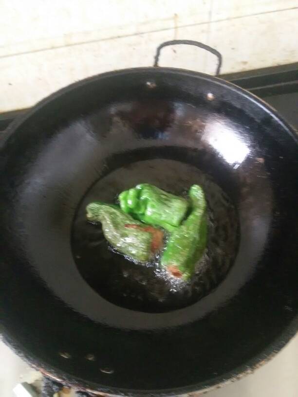 3个宝宝 LV.10全部塞好后 ,放油入锅烧热再打小火放入辣椒